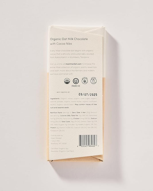 Organic Oat Milk Chocolate Bar with Cocoa Nibs